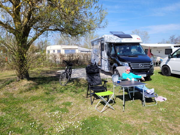Dieses Jahr haben wir uns nichts spezielles vorgenommen, wir wollten uns hinten eine Luftfederung und eine AHK einbauen lassen, dehalb fuhren wir zuerst zur Fa. Stebler der uns einen Kostenvoranschlag machen sollte. Es lag genau auf unserer Route, denn danach fuhren wir weiter auf den CP zum Fischer Mischl (N: 49°07`31" ; E: 10°43`0"). Ein toller ACSI Platz, auf dem wir vor ein paar Jahren schon mal standen ...