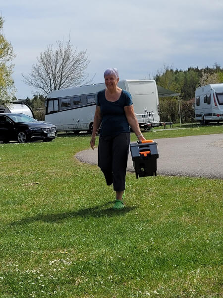 Nicht nur die Biber waren fleisig, auch Birgit übte schon mal das "Bongo" leeren, da sie ja bald 3 Wochen allein auf einem CP in Bad Lauterberg (Harz) stand während ich in der "Kur-Anstalt" bleiben musste. ;-)
